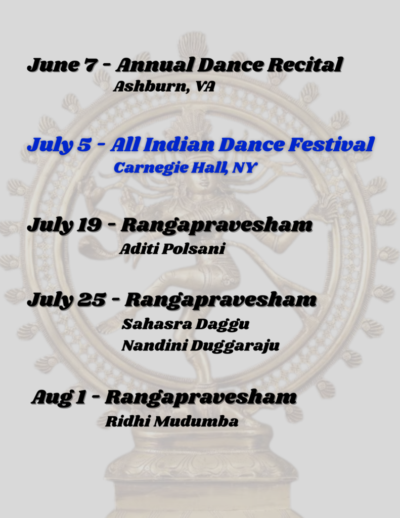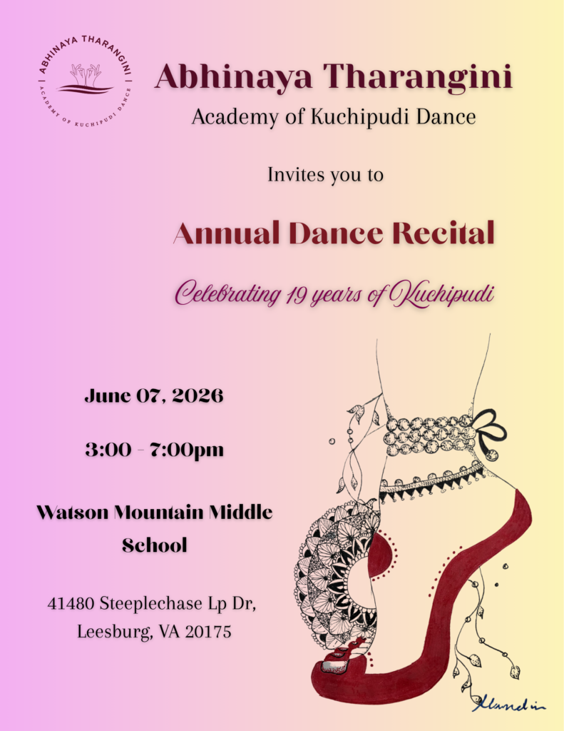 The academy, based in Ashburn, VA, offers a comprehensive, curriculum-based instruction in both the theoretical and practical aspects of Kuchipudi dance. It also provides specialized instruction for a Certificate in Kuchipudi dance. In addition, students receive intensive training in preparation for their Rangapravesham (solo debut). Students are also given numerous performance opportunities at prestigious venues such as the Kennedy Center, Wolf Trap, the Embassy of India, the Freer Gallery of Art, Fiesta Asia DC, Cherry Blossom DC, and various dance festivals in the DMV area.. More..